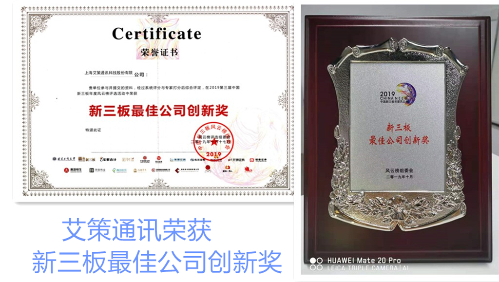 上海艾策通訊榮獲“新三板最佳公司創(chuàng)新獎”