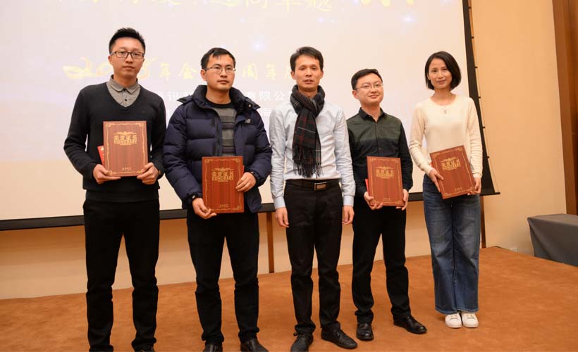 銷(xiāo)售部負(fù)責(zé)人劉超波先生向2017年度優(yōu)秀員工徐君超、康睿、楊彩萍頒發(fā)了獎(jiǎng)金和證書(shū);副總經(jīng)理劉文泉先生向劉剛、王卓、趙益的家屬頒發(fā)了“艾策好家屬”的獎(jiǎng)勵(lì)和感謝信;王總親自向趙益、馬毅、薛海蓉、黃家樂(lè)等四人頒發(fā)了十周年特別貢獻(xiàn)證書(shū)和獎(jiǎng)金,表達(dá)了公司和大家共同成長(zhǎng),共同發(fā)展,共享成果的心意。員工代表馬毅在會(huì)上發(fā)表即席感言,和大家分享了十年來(lái)在艾策工作的心得和體會(huì),他幽默風(fēng)趣的發(fā)言,獲得了大家陣陣掌聲。