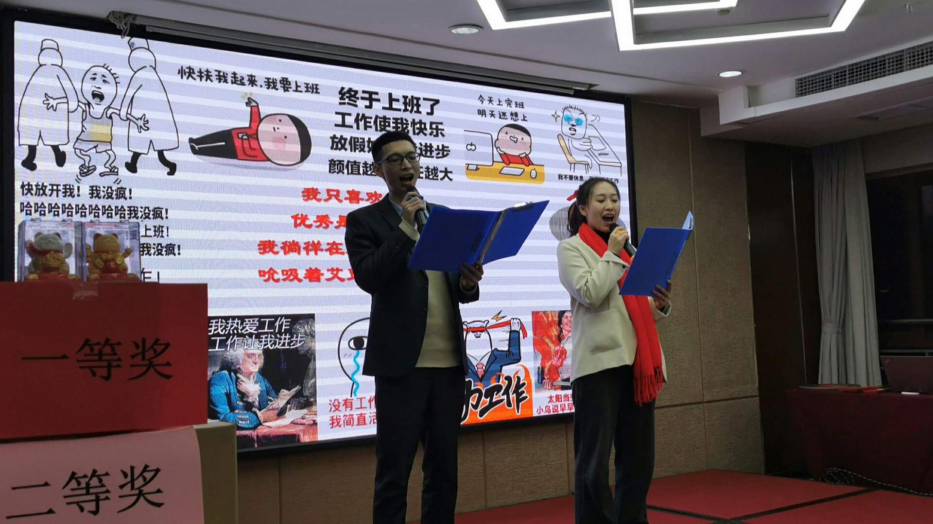 19日、20日,上海團隊、北京團隊、杭州團隊和部分成都過去的同事齊聚一堂,繼續推進完成上海總公司的年會工作。整個年會流程和成都基本一致,分別有員工述職、產品培訓、年會晚宴、優秀員工頒獎、團建PK和晚宴等活動。在上海辦公室的接待大廳,公司領導和大家一起參加了全流程,許多今年入職的新同事和駐地員工,紛紛表示通過這樣的活動,充分感受到了集體的概念,喚醒了歸宿感,并進一步產生團隊凝聚力。